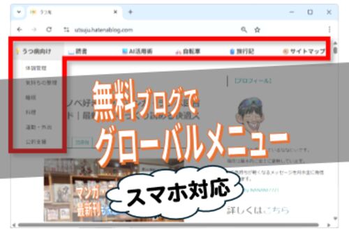 「自分のブログ、もう少し“ちゃんとしてる感”を出したい…」 そんなふうに思ったことはありませんか? グローバルメニューは、ブログ画面上部のリンク集で、ブログの“顔”ともいえる部分。 読者が「どんな記事があるのか」を一目で把握できるだけでなく、デザ…
