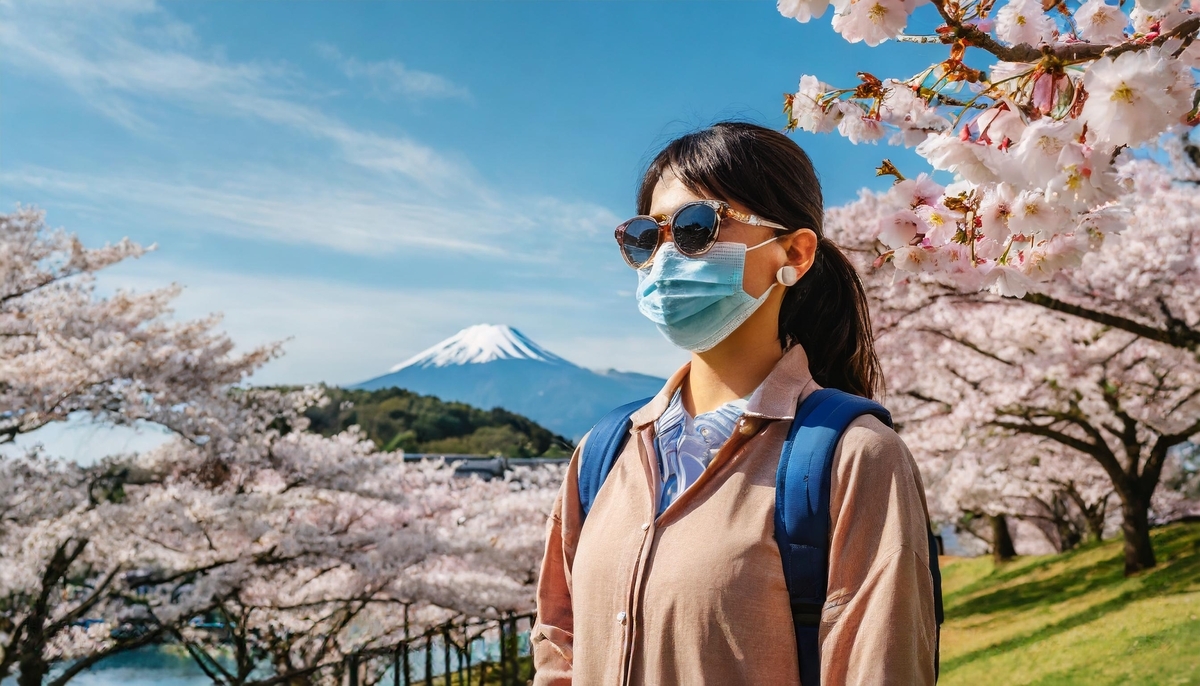 外で過ごす時間が長い方に特におすすめなのが、花粉を防ぐ「サングラス+マスク」 の組み合わせです。